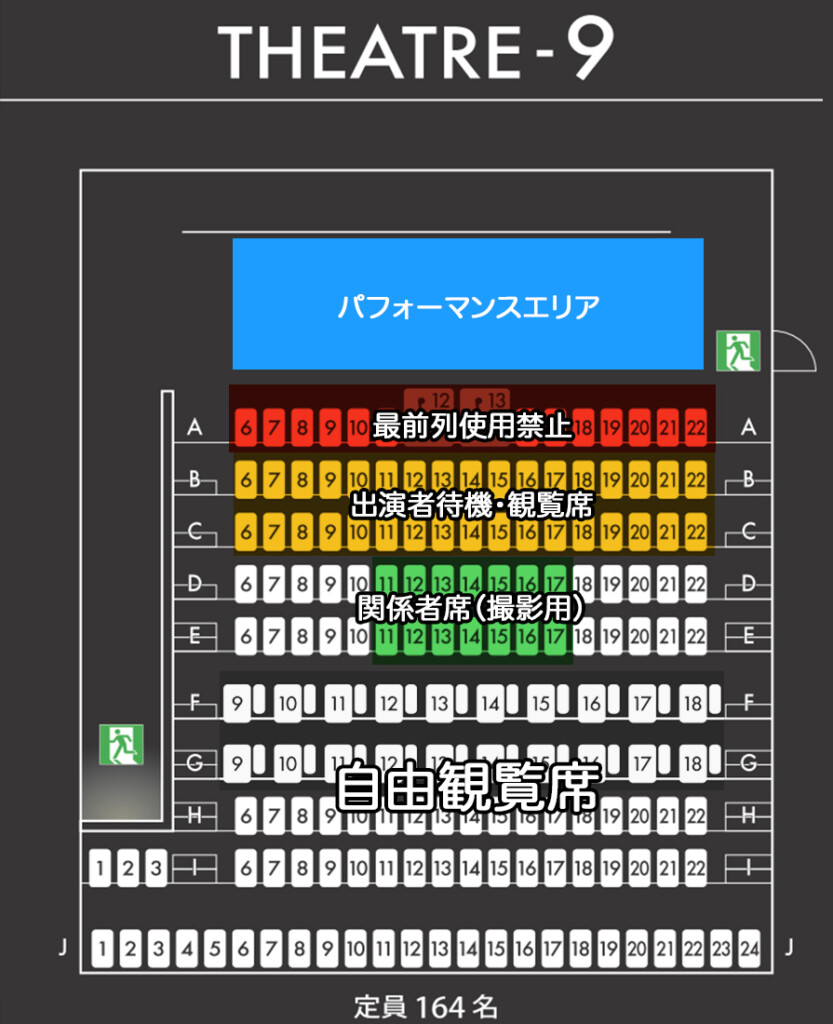 ※前方のお席は出演者関係席になります、また当日の状況により使用禁止の座席が設けられるかもしれません予めご了承ください。